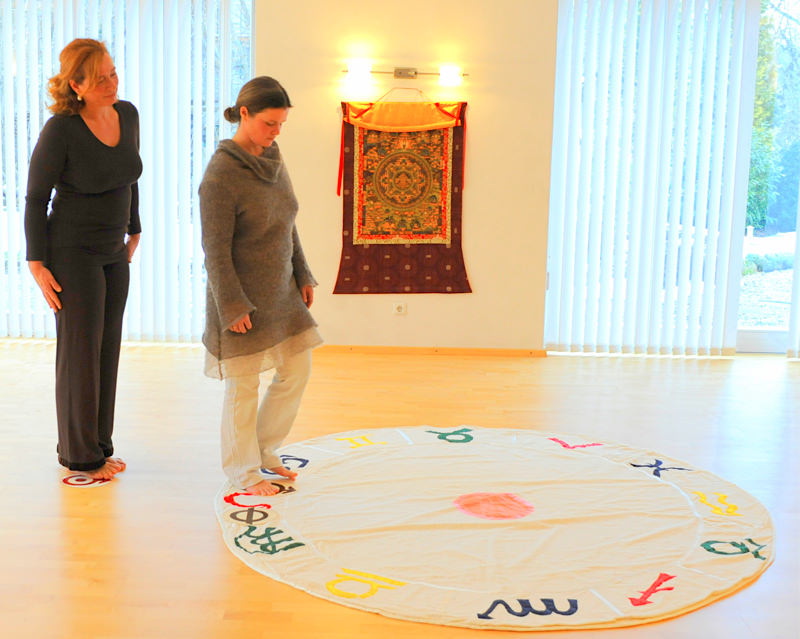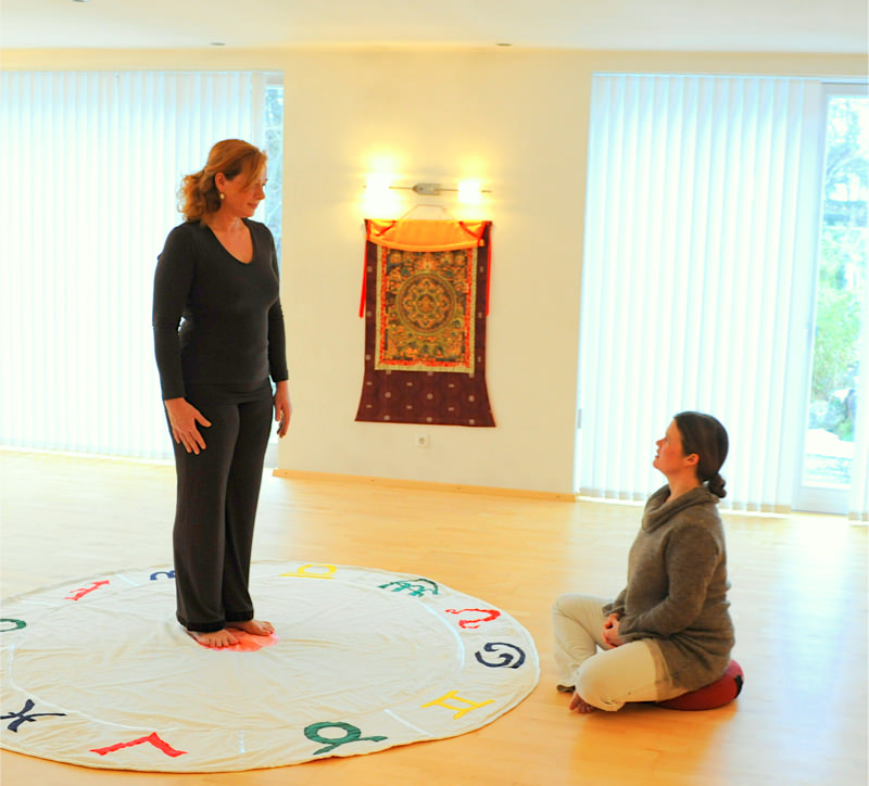 Bei Bedarf arbeiten wir mit der Tiefenintelligenz auf dem Horoskopteppich. Dieses Feld ist ein auf den Boden projiziertes und somit erlebbares Abbild Ihres lebendigen Enregiefeldes und einer von der Natur darauf eingestellten aktuellen Veränderung. Dieses Feld ist der Symbolkreis der Schöpfung Ihres inneren und äußeren Universums. Ich empfinde es als ein spannendes alchemistisches Arbeitsfeld und modernes Laboratorium von uns Menschen des 21. Jahrhunderts.